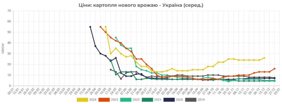 Вони також додали, що торік на цю ж пору картопля коштувала в середньому на 85% дешевше.
