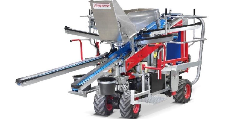 За словами керівника підприємства Валерія Хворостовського, яблука збирають за допомогою універсального комбайна Pluk-O-Trak, нідерландського виробника Munckhof Fruit Tech Innovators.