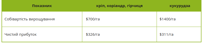 Досвід ФГ «Свєтлова» показує, що нішеві культури (кріп, коріандр, гірчиця) виграють за рахунок операційної гнучкості. Директор господарства Вадим Свєтлов наголошує на можливості надраннього висіву — одразу після сходу снігу. Він порівняв вирощування прянощів і кукурудзи.
