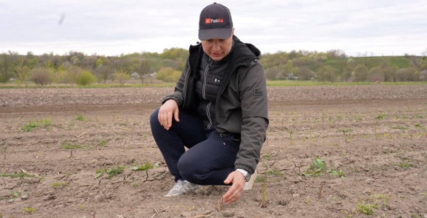 Спаржеву садибу площею у пів гектара Павло Булгаков висадив три роки тому. Тут росте майже 15 тисяч саджанців. Нині він підраховує збитки.